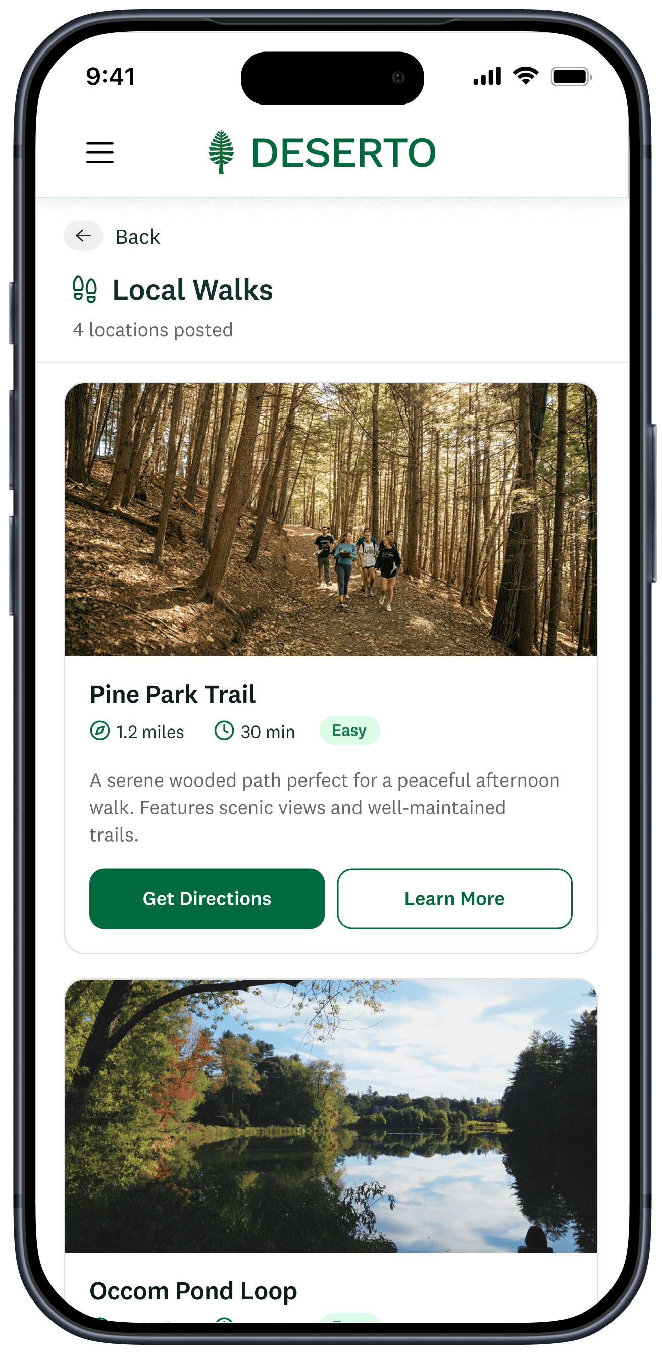 The Dartmouth Outdoors Website, and websites like AllTrails and the Upper Valley Trails Alliance, already host accurate and live data, so Deserto should route users to trusted resources
