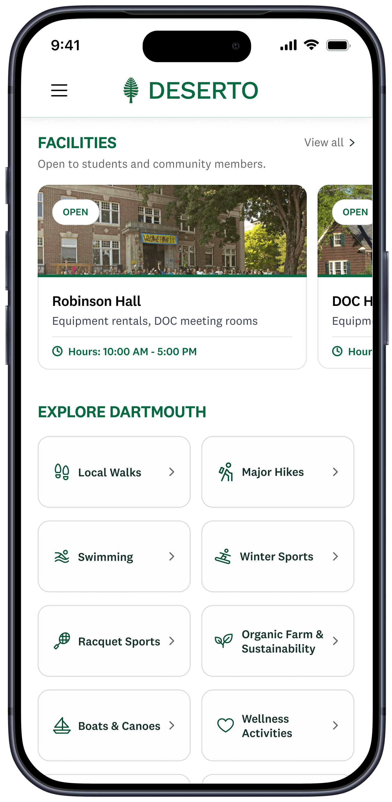 Dartmouth culture thrives on the outdoors — hiking, skiing, kayaking, organic farming, you name it. However, outdoor and wellness events are scattered across several platforms including email inboxes, websites, and group chats, making them hard to find and easy to miss.